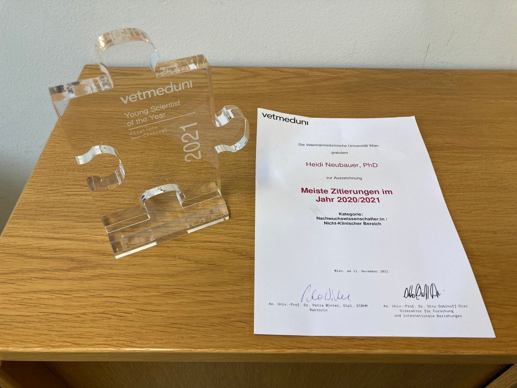 - 1 young researcher award was given to Heidi Neubauer for obtaining the highest amount of third party funding in the non-clinical area